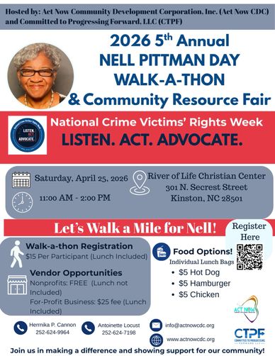 Join us for the 5th Annual Nell Pittman Day Walk-a-thon Fundraiser and Community Resource Fair, ...